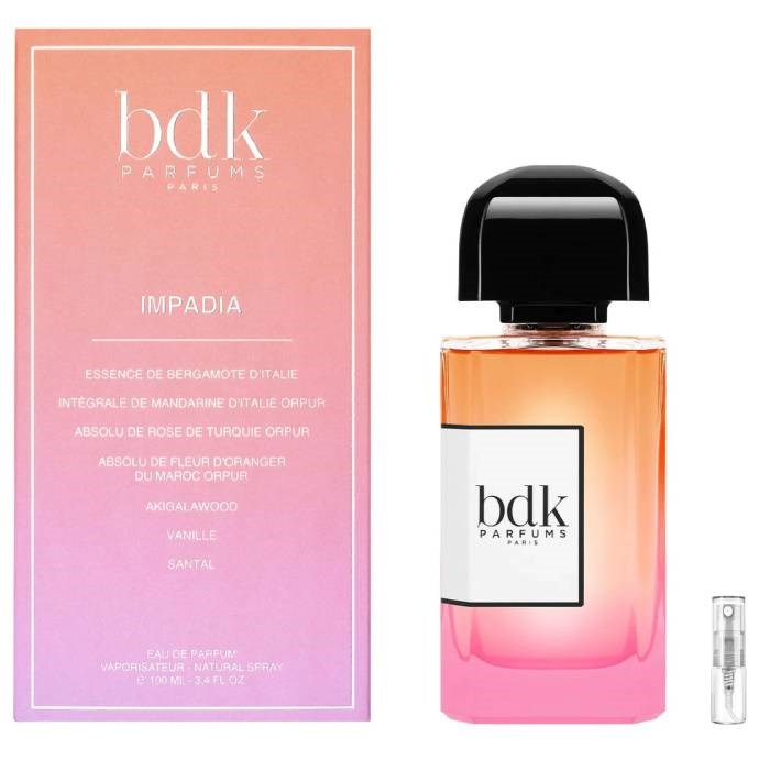 Impadia BDK Parfums je novi unisex parfem lansiran početkom 2025., koji spaja floralne, voćne i gourmand elemente u harmoničnu cjelinu. Stvoren od talentiranog parfemera Jordi Fernándeza, ovaj parfem evocira sliku Pariza u rozoj boji, kako ističu recenzije stručnjaka poput Sophie Normand.