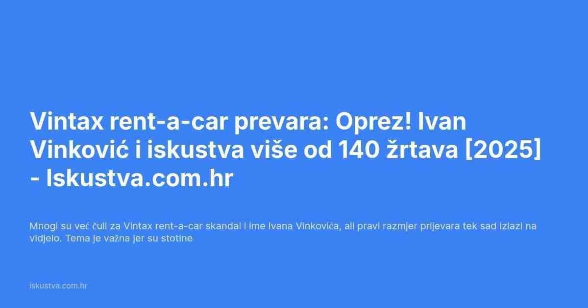Vintax rent-a-car, u vlasništvu Ivana Vinkovića, postao je sinonim za jednu od najvećih prijevara na tržištu najma vozila u Hrvatskoj. Stotine građana i turista ostali su bez depozita, suočeni s ignoriranjem, lažnim obećanjima i lošim ugovorima.